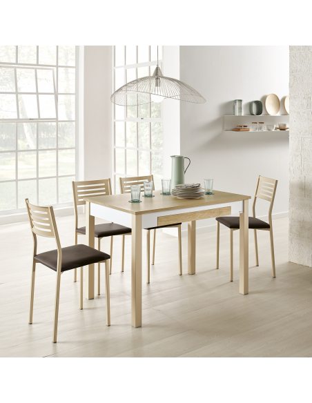 Mesa de Cocina Laminado Delta Fija con opción de añadir cubertero de PVC o madera de Haya y fabricar en medidas especiales. Contactar para más información sobre estos accesorios. Personalizable tanto en medidas como en acabados.