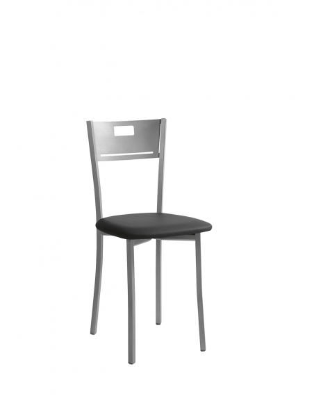 Silla de Cocina Isa. Armazón metálico en acabado aluminio epoxi, asiento tapizado en polipiel, acabado a a elegir.