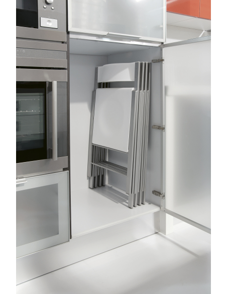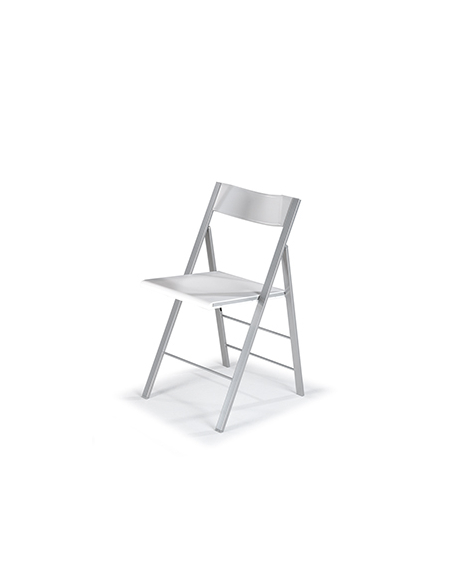 Silla de Cocina Vera con estructura en aluminio Epoxi y asiento y respaldo en color Blanco mate. Armazón de tubo plano de 30 mm.