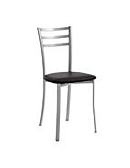 Silla de cocina modelo Kati con estructura metálica en tubo ovalado de 23 mm en acabado epoxi color aluminio y asiento en polipiel en acabado a elegir entre la carta de acabados.