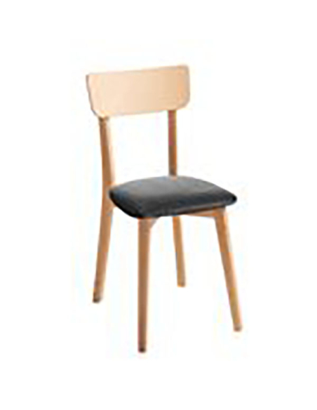 Silla de cocina modelo Zaida con estructura en madera de haya color natural y asiento en polipiel en acabado a elegir entre la tabla de acabados.