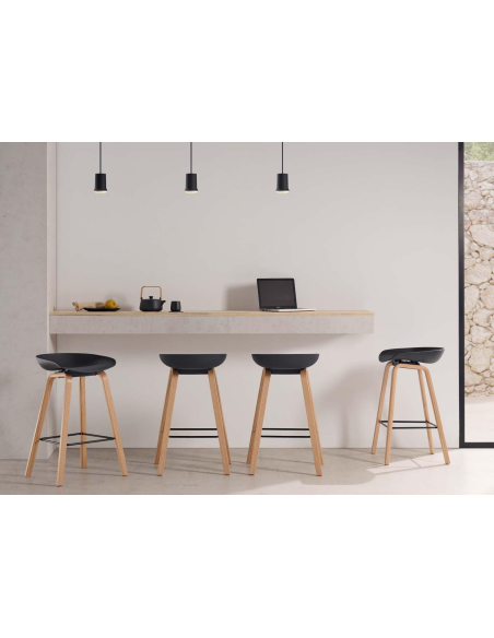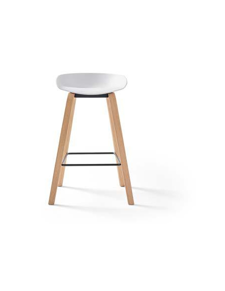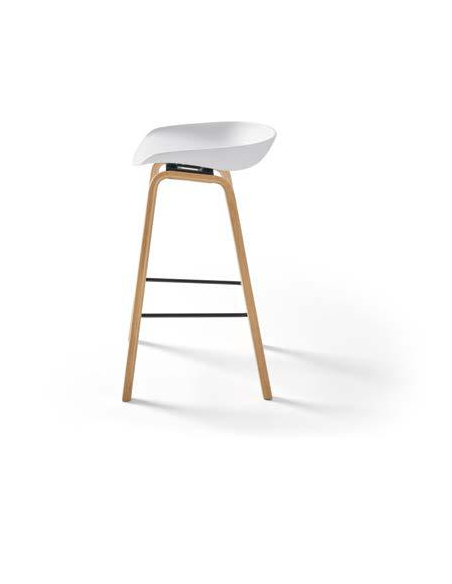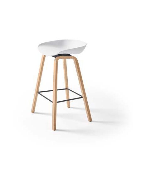 Set 2 Taburetes de Cocina Turín con asiento en polipropileno y patas en roble laminado. Posibilidad de elegir el asiento en dos acabados: blanco o negro.