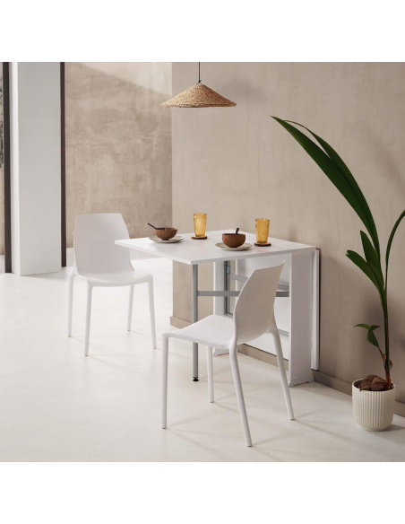 Silla de Cocina Paula Apilable. Fabricada con el armazón, asiento y respaldo en polipropileno acabado blanco.
