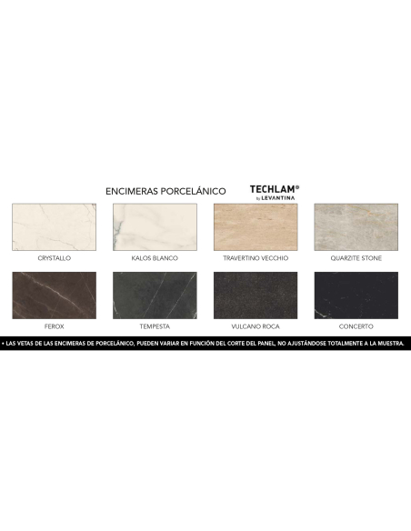 Encimera Porcelánica 3 mm. + Laminado sobre cristal 5 mm. + Tablero 10 mm