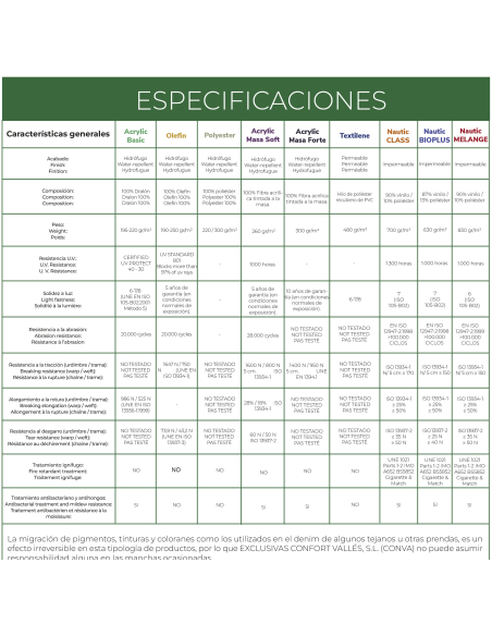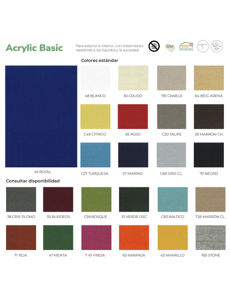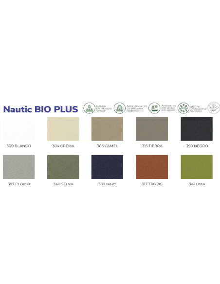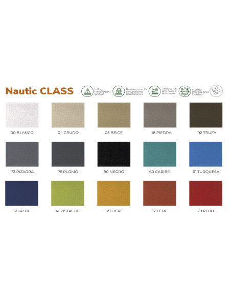 Materiales disponibles: Acrílico, Acrílico M.Soft, Náutico Class, Náutico Bio Plus/Melange.