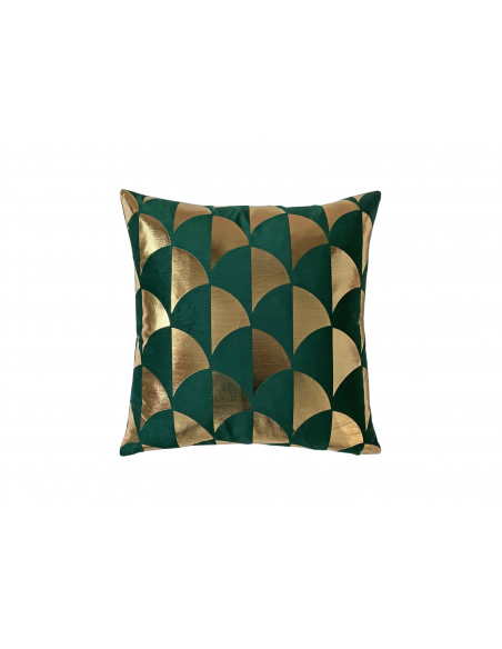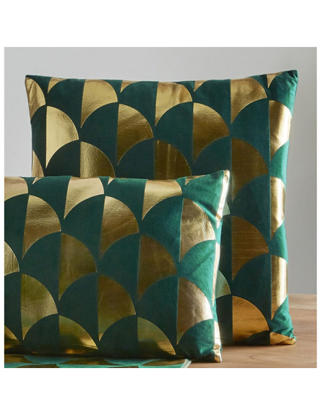 Set 2 cojines decorado chenilla turquesa y oro con relleno.