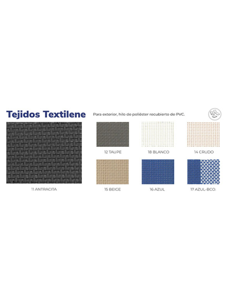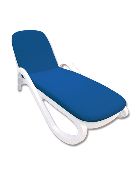 Cojín de tumbona en textilene. Un modelo disponible en varios colores, con tiras de sujeción, desenfundable con cremallera y relleno de fibra compacta.