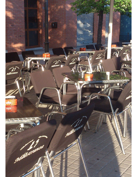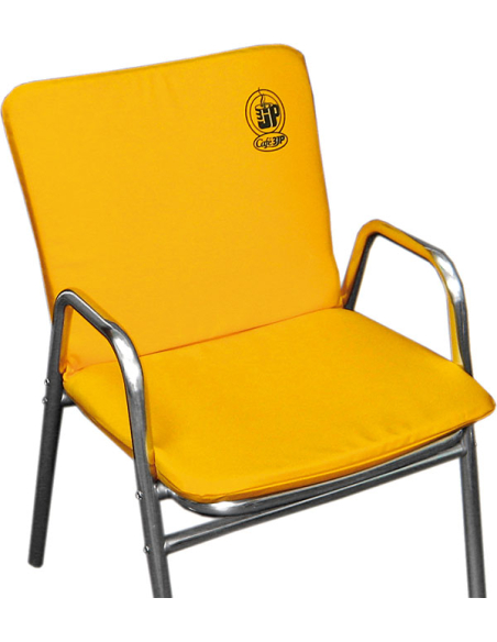 Elige entre nuestra variedad de tejidos y contacta con nosotros si deseas informarte sobre la serigrafía de tu logotipo en tus nuevos cojines para sillas de hostelería.