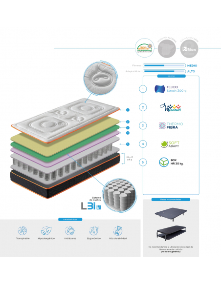 No se recomienda el uso de somieres de láminas para este colchón (no cubre garantía).