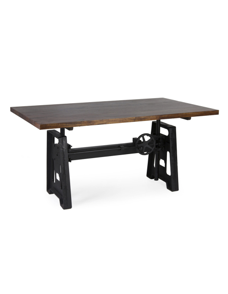 Esta mesa de comedor regulable Pipa pertenece a una colección diferente y especial. Tiene un diseño contrastado ya que cuenta con madera de mango, una madera muy bonita y versátil, y hierro, el cual le da estabilidad, peso y fuera a todas las piezas. Un estilo industrial que cuenta con la posibilidad de regular la alturas de sus productos. Esta en concreto puede aumentar de 77 a 104 cm según las necesidades del cliente. Tiene infinidad de combinaciones en lo que a otros muebles se refiere ya que dentro de sus particularidades sus tonos y líneas permiten la configuración de espacios únicos y personales.