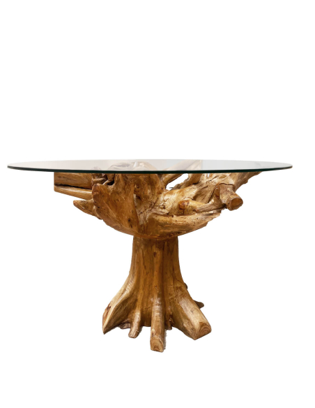 Mesa de comedor de raíz de teka blanqueada, de dos piezas, redonda de 130 cm. de diámetro x 78 cms. de altura, para los amantes de la naturaleza que quieran llenar su hogar de esta.