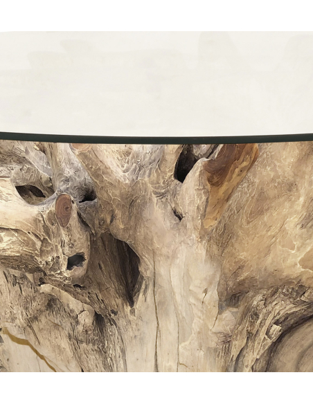 Mesa raíz teka blanqueada cristal