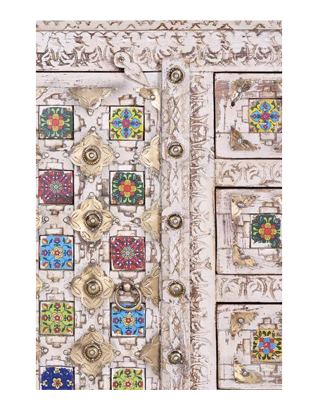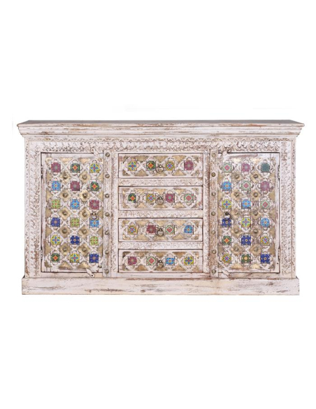 Bonito y diferente aparador en madera de mango y detalles en bronce y cerámica para conseguir que tu comedor destaque como se merece. Con este diseño tan único y su elegante estilo tendrás una estancia renovada y lista para hacerla más personal.