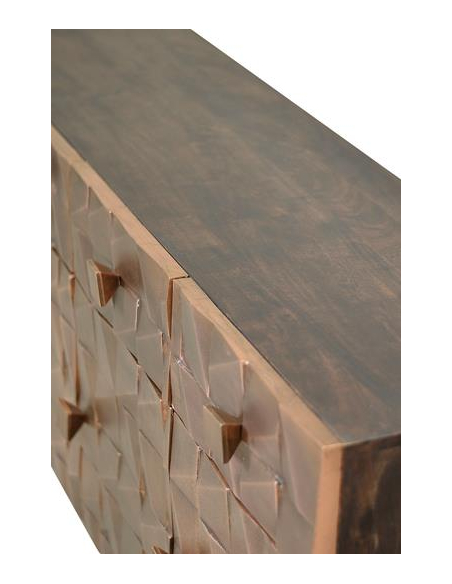 Bonito y diferente aparador Cobre 4 puertas y 4 cajones en madera de mango y cobre con el que conseguirás darle un toque distinto a tus estancias gracias a su estilo y su diseño.