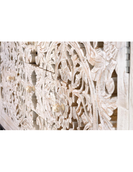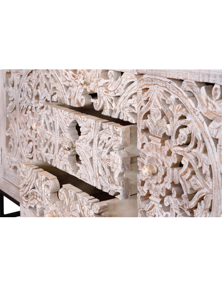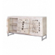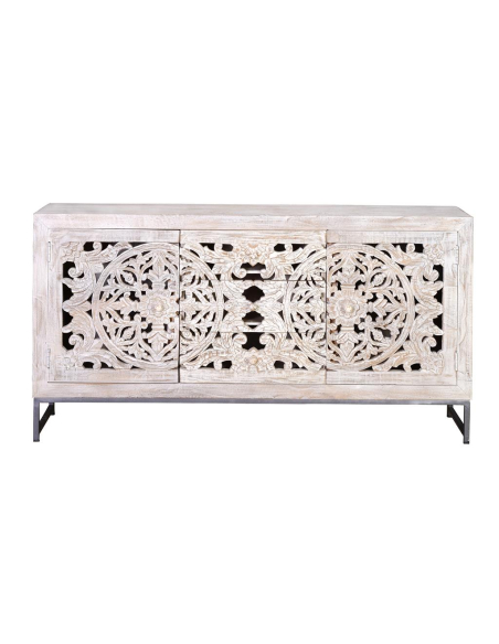 Aparador con 2 puertas y 3 cajones en madera de mango blanco envejecido y base gris