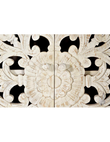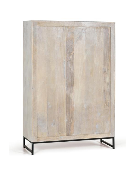 Mesita de noche con 1 puerta y 1 cajón en madera de mango blanco envjecido y base gris