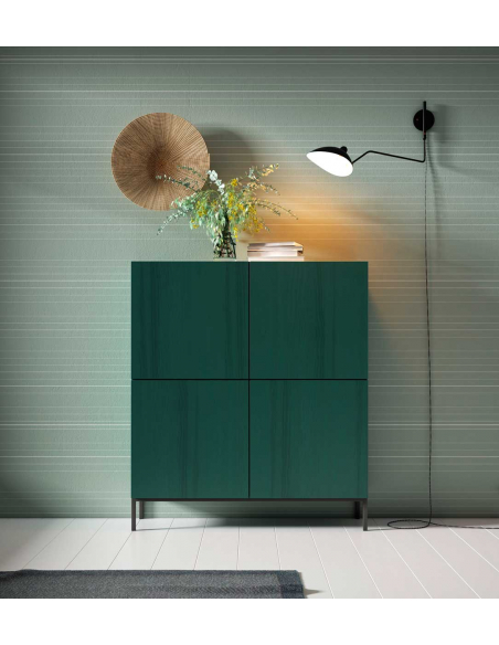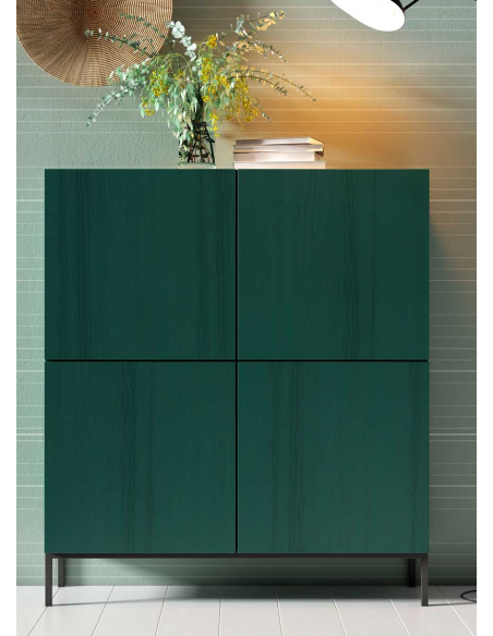 Vitrina Zoe con cuatro puertas de apertura push. Original y moderna, un mueble versátil y totalmente personalizable.