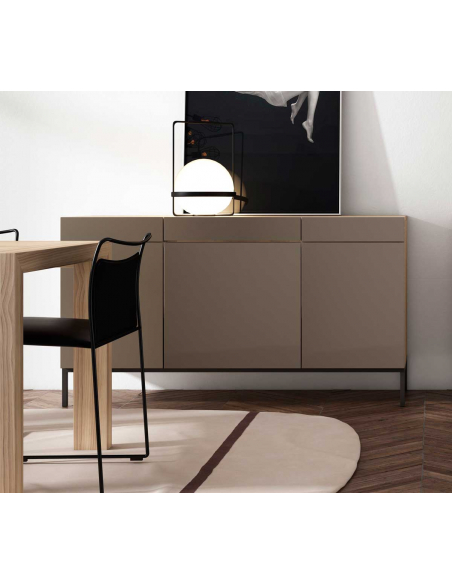 Aparador Zoe 150 cm tres puertas y tres cajones. Un mueble totalmente personalizable disponible en acabados barnizados o lacados.