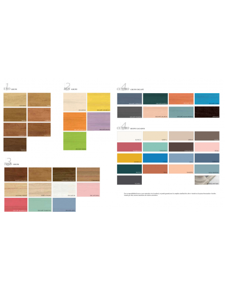 Muestrario orientativo: Debido a la naturaleza viva del producto (madera) no puede garantizarse la completa similitud de color o veteado de los lacados y acabados barnizados.