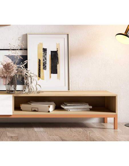 Módulo bajo Zoe 120 cm estante. Un mueble totalmente personalizable disponible en acabados barnizados o lacados.