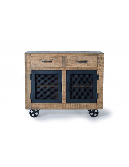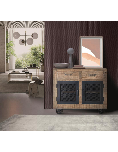 Aparador pequeño dos puertas y cajones en mango y metal. Aparador pequeño práctico que cuenta con dos puertas en metal con rejilla y dos sencillos cajones.