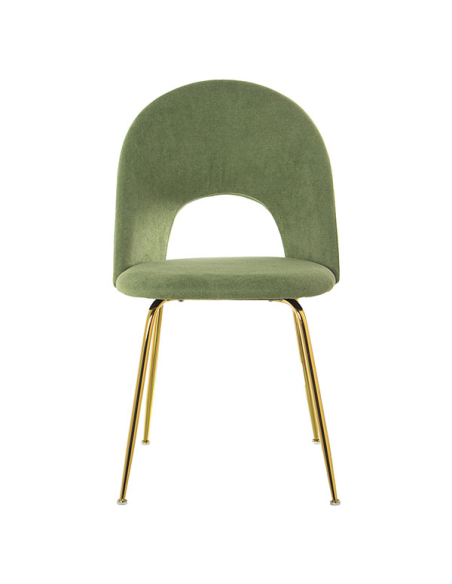 Set cuatro sillas terciopelo verde y patas metal dorado