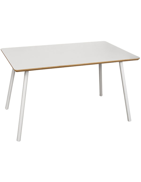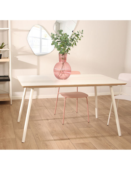 Mesa de comedor madera natural y patas metal blanco. Si buscas una mesa de comedor elegante y funcional, esta es perfecta para ti. Construida con una sólida estructura de metal blanco y un tablero de madera natural de 3 cm de grosor, esta mesa es duradera y resistente. Con unas dimensiones de 140X80X75 CM, es ideal para reuniones familiares o cenas con amigos.