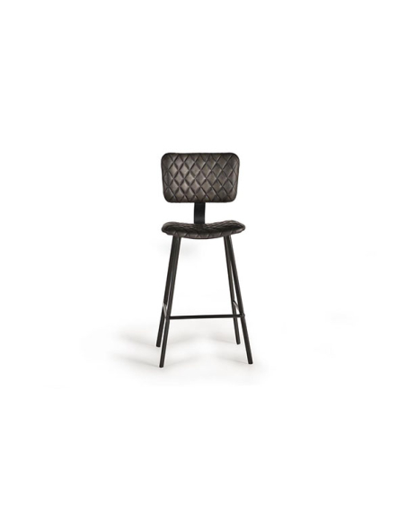 Set 2 taburetes tapizados en cuero gris antracita con estructura en metal.