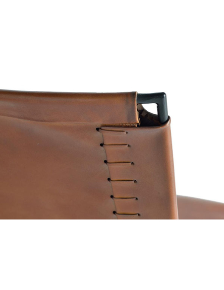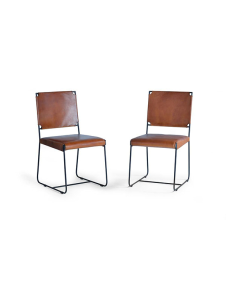 Set de 2 sillas de comedor tapizadas en piel de estilo industrial con patas de metal.