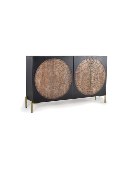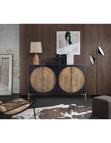 Aparador Calcuta 4 puertas en madera de mango y base de metal.