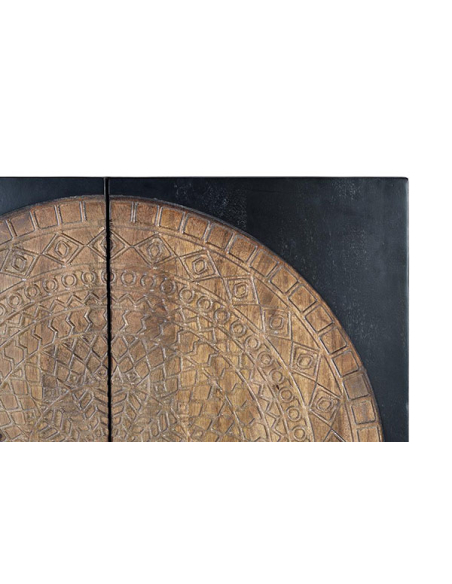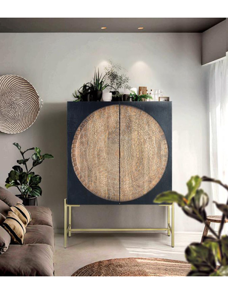 Vitrina aparador Calcuta 2 puertas en madera de mango y base de metal. Acabado nogal oscuro.