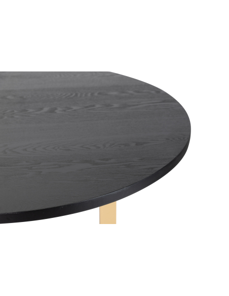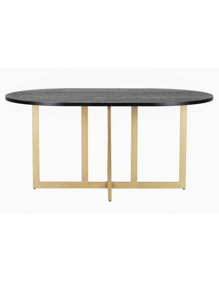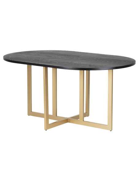 Mesa de comedor fija de 160 cm en mdf negro y patas en metal dorado. Esta mesa de comedor combina la belleza del MDF con la elegancia del metal en tonos negro y dorado. Perfecta para cualquier comedor moderno.