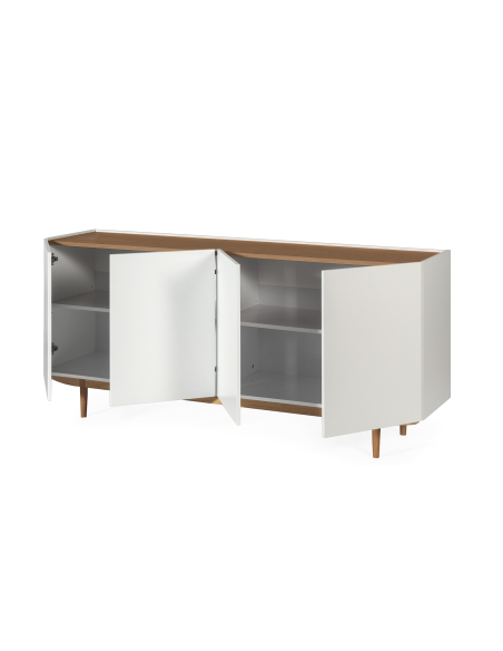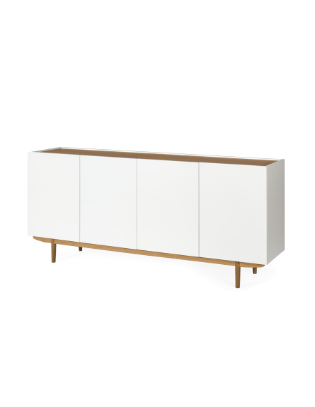 Aparador bajo Erika de 180 cm lacado blanco con encimera y patas en color roble. Una pieza de mobiliario elegante y funcional que elevará el encanto de tu hogar. Con su diseño moderno y la combinación de lacado blanco con encimera y patas en color roble, este aparador añade un toque de sofisticación a cualquier espacio. Con una longitud de 180 cm, este aparador proporciona amplio espacio para almacenar tus objetos y organizar tu hogar.
