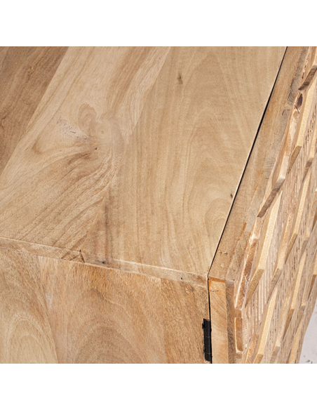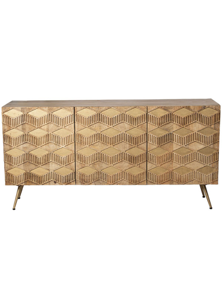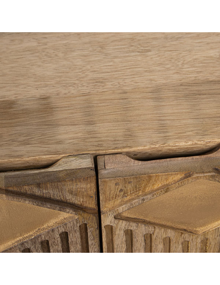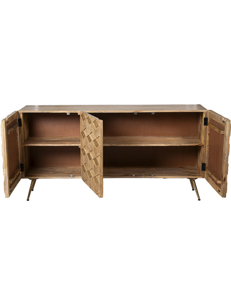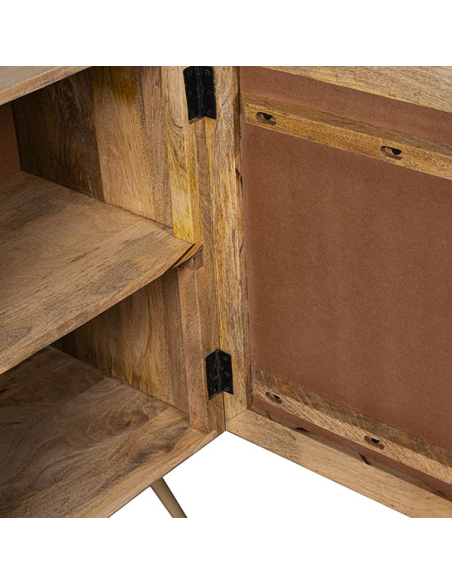 Aparador Tijuana madera de mango 3 puertas. Mueble fabricado en madera de mango con tres puertas y dos huecos, uno conformado por dos puertas y otro más pequeño con una puerta, en ambos huecos dispone de separador interior para proporcionar más espacio de almacenamiento y poder tener todo organizado y a mano.
