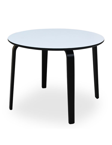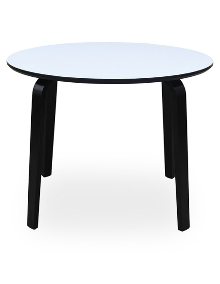 Mesa de comedor madera blanca con canto negro y patas color negro