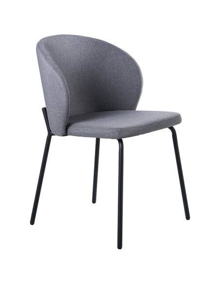 Set 4 sillas de comedor tapizadas tela gris con patas metal negro