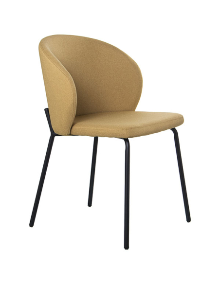 Proporciona luminosidad y comodidad al comedor con este Set 4 sillas de comedor tapizadas tela amarilla con patas metal negro. La tapicería en color amarillo y las elegantees patas de metal color negro aportan estilo al espacio.