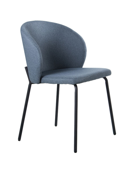Actualiza el comedor con la elegancia y practicidad de este Set 4 sillas de comedor en tela de poliéster color azul con patas de metal acabado negro.