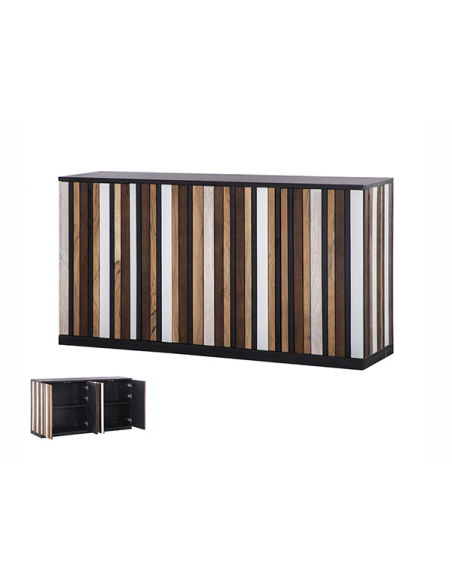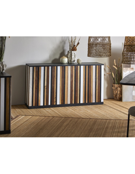 Aparador Buffet rústico acacia y DM. Un aparador buffet en madera de acacia y DM, con un estilo rústico. Con sus 2 puertas y gran tamaño, es una pieza que aporta mucho espacio de guardado.