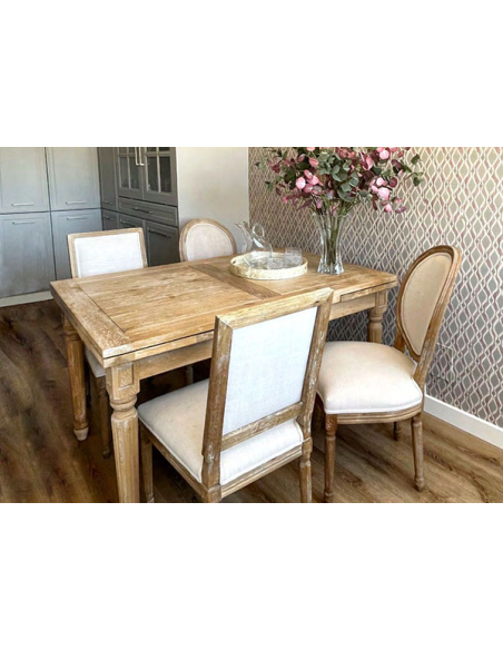 Amplia variedad en mesas de comedor y salón. Funcional mesa de comedor modelo Florencia rectangular y extensible de 140 /220 cm. Fabricada en roble macizo. La terminación en color natural aportará a su comedor un ambiente RÚSTICO, acogedor y cálido al mismo tiempo. Una mesa muy práctica para las grandes ocasiones, ya que permite acoger gran cantidad de comensales.