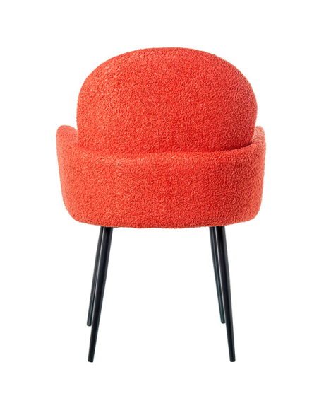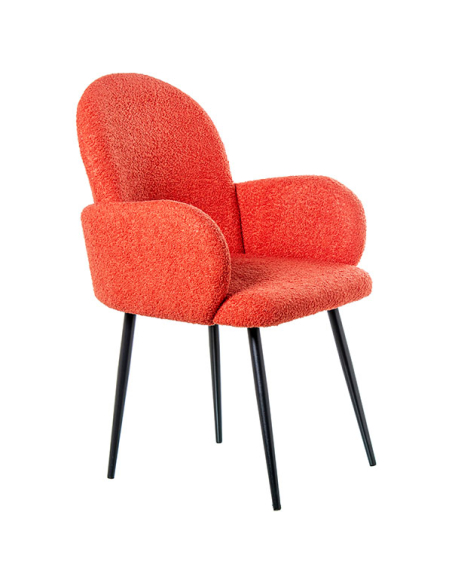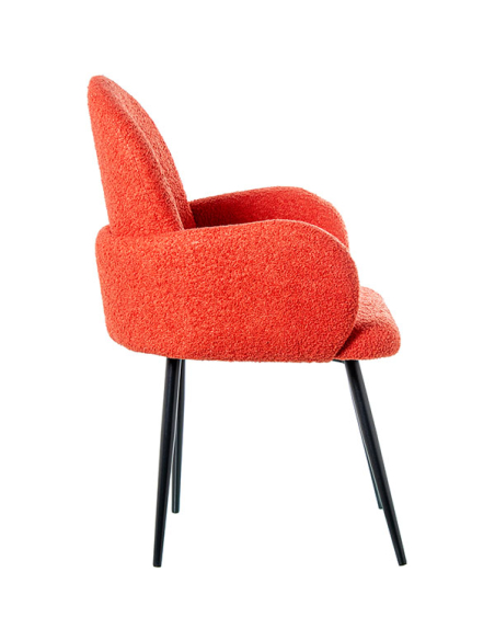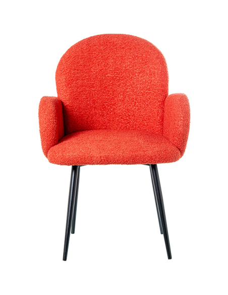 Set 2 sillas con brazo patas metal tela caldera, las cuatro patas metálicas son tubulares con delicada terminación en color negro. Tanto el respaldo, el asiento y los apoya brazos están recubiertos en este delicado textil estilo boucle. Este sillón no solo es un asiento cómodo, sino también una declaración de estilo que transformará tu sala de estar o rincón de lectura. El color vibrante del tejido se combina armoniosamente con las patas de metal, creando un sillón que destaca por su estética y comodidad. La versatilidad de este sillón te permite decorar cualquier ambiente de tu hogar.