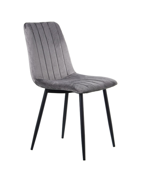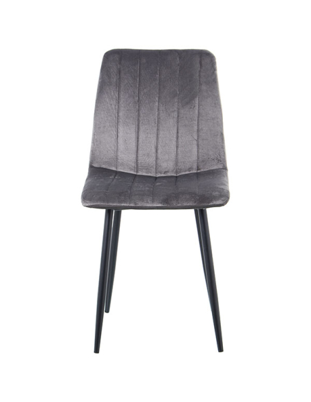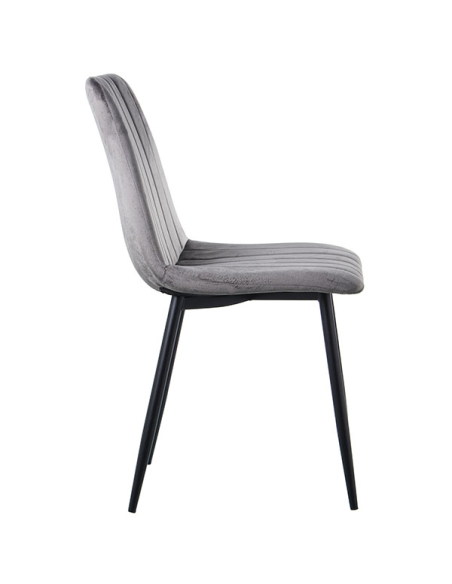 Set 4 Sillas de comedor tela gris con patas metal negro, tanto el respaldo como el asiento acolchonado están revestidos en un hermoso textil con textura aterciopelada, suave y lustroso al tacto. Las costuras en forma vertical le dan un toque original a esta silla sin perder la delicadeza. Las líneas elegantes y detalles cuidados crearan un ambiente acogedor y a la moda en tu sala de estar, convirtiéndolo en la elección perfecta para aquellos que buscan una combinación única de comodidad y funcionalidad. Los colores neutros hacen de esta silla la elección perfecta para cualquier comedor, cocina o incluso oficina.