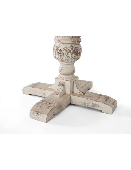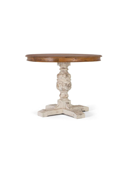 Mesa de comedor Apure redonda, es una pieza encantadora que agregará un toque rústico y elegante a tu hogar. Con una tapa redonda en color natural y una base de madera con calado y pintada en blanco desgastado, combina estilo y funcionalidad a la perfección. Perfecta para reuniones familiares o cenas íntimas, esta mesa creará un ambiente acogedor y cálido en tu comedor. Esta mesa es ideal para cualquier espacio pequeño que tengas en tu hogar, la disposición redonda permite estar mas conectado con el resto de las personas con las que la compartas. Podrás encontrar mas productos de la línea Apure en nuestra web.