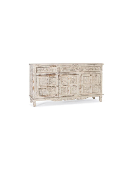 Aparador Apure 3 puertas tallado a mano, es una pieza de mobiliario excepcional que combina funcionalidad y belleza en perfecta armonía. Con tres puertas y tres cajones, ofrece amplio espacio de almacenamiento. El interior es de color natural y en su exterior podemos apreciar el color blanco desgastado. Sus bisagras metálicas garantizan un funcionamiento suave y duradero. Además, este aparador está meticulosamente tallado a mano con bellos detalles que añaden un toque de elegancia y sofisticación a cualquier espacio. Ya sea en el comedor, la sala de estar o cualquier otro lugar de tu hogar, el aparador Apure será el centro de atención, tanto por su funcionalidad como por su estética impresionante. Esta pieza esta inspirada en los muebles de Bali. Podrás encontrar mas productos de la línea Apure en nuestra web.