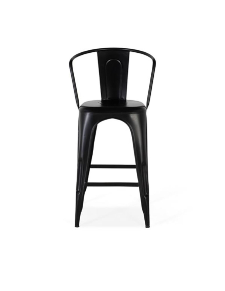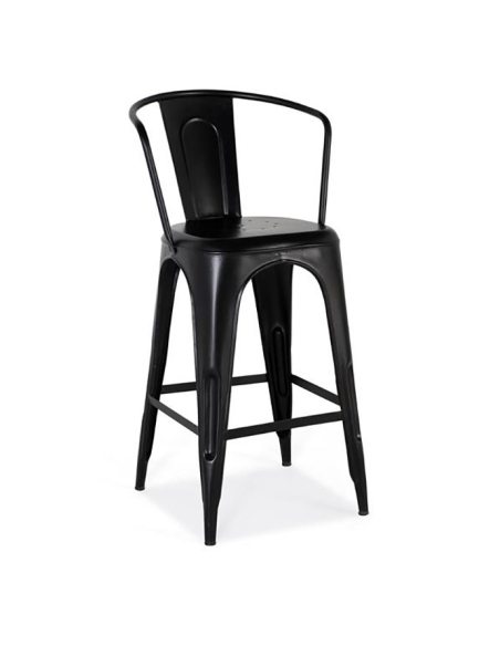 Taburete alto industrial metal, con un diseño industrial en metal negro, este taburete cuenta con cuatro patas y un apoyapiés para mayor comodidad. El respaldo que termina en forma curva en los laterales de la banqueta ofrece un soporte adicional y un aspecto elegante. Perfecto para colocar en tu barra de cocina o en un área de bar, este taburete añadirá un toque moderno a cualquier espacio. Esta una pieza sumamente combinable, liviana y fácil de transportar, es la mejor elección para decorar cualquier espacio.