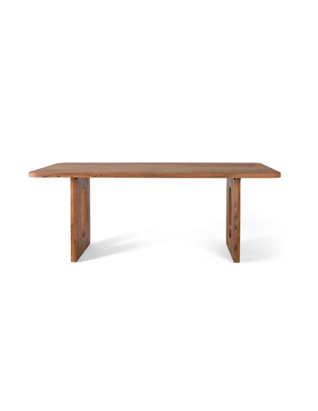 Mesa de comedor rectangular patas caladas, la superficie de madera exhibe hermosas betas que añaden un toque de autenticidad y calidez a tu comedor. Las patas, también de madera, presentan óvalos calados que agregan un elemento de diseño único y original. Esta mesa es más que un lugar para compartir comidas; es una obra de arte funcional que transformará tu espacio en un ambiente acogedor y sofisticado. Esta mesa de comedor será el toque final para cualquier comedor gracias a su versátil y detallado diseño realizado con las mas hermosas materias primas.
