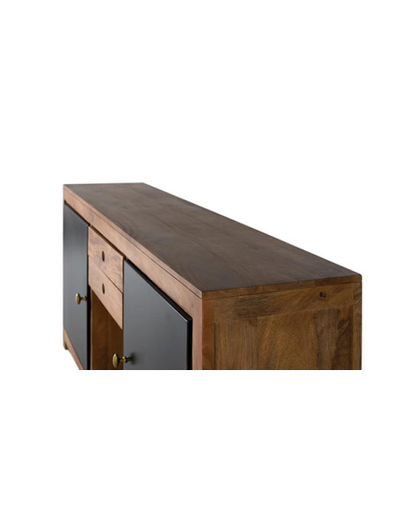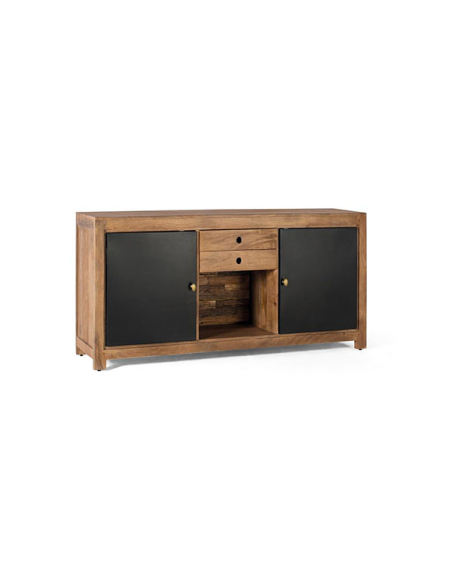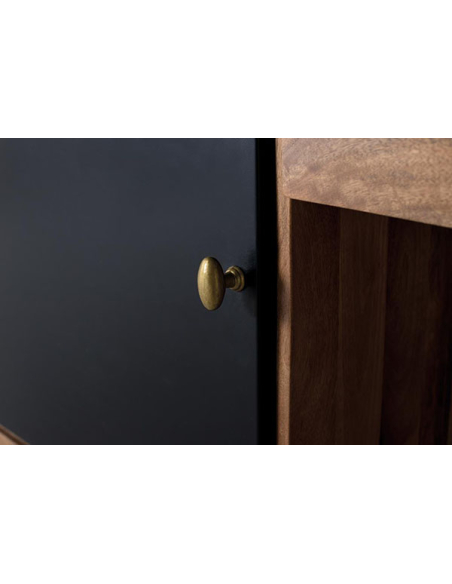Aparador Rin 2 puertas con iluminación interior, una obra maestra de diseño que combina la elegancia atemporal con una funcionalidad excepcional. Este impresionante mueble cuenta con una construcción de madera de alta calidad, que le confiere durabilidad y un aspecto sofisticado. En los laterales, encontrarás dos puertas que se abren para revelar un amplio espacio de almacenamiento, perfecto para guardar vajilla, mantelería u otros artículos de uso cotidiano. En el centro, dos cajones ofrecen un espacio adicional para organizar cubiertos, manteles o cualquier otro objeto pequeño que desees tener a mano. Una característica destacada de este aparador es el cubículo inferior abierto, que añade un toque moderno y elegante al diseño. Equipado con iluminación en el fondo, este espacio es ideal para exhibir tus objetos de decoración favoritos, creando un ambiente acogedor y sofisticado en tu hogar. Los tiradores metálicos dorados añaden un toque de lujo y elegancia al mueble, complementando a la perfección su diseño refinado. Con el aparador Rin podrás añadir un toque de estilo y funcionalidad a cualquier espacio de tu hogar.