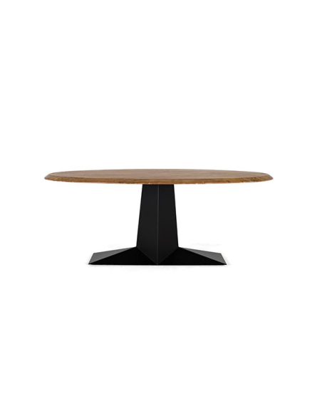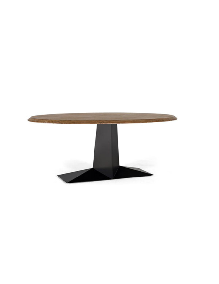Mesa de comedor ovalada con base de metal