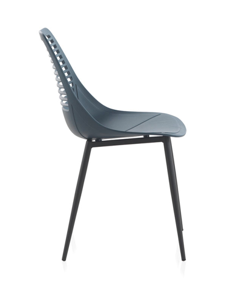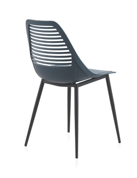 Set Odín 4 sillas pp azul con patas metálicas, estas sillas están diseñadas para combinar estilo y funcionalidad, ofreciendo comodidad y durabilidad para cualquier ambiente. Las patas metálicas están habilidosamente pintadas en un tono natural, simulando la apariencia de la madera, lo que añade un toque de calidez y sofisticación al conjunto. Esta elección de diseño no solo proporciona estabilidad sólida, sino que también complementa a la perfección el aspecto general de las sillas. La estructura de polipropileno presenta elegantes diseños calados en la superficie, añadiendo un elemento de interés visual y modernidad al conjunto. Además, el respaldo de las sillas cuenta con un calado de rombos, que no solo ofrece un diseño atractivo, sino también una ventilación adicional para una mayor comodidad durante su uso.