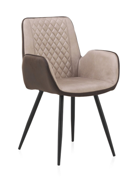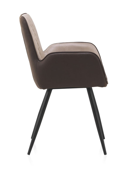Sillón Hera tapizado bicolor patas metálicas negras, con su estructura que exhibe un exterior en un color y una cara interior en un tono contrastante, agrega un toque de dinamismo y estilo visualmente atractivo a tu espacio. Las patas metálicas en color negro no solo proporcionan una base sólida y estable, sino que también añaden un toque de modernidad y sofisticación al diseño general del sillón. El respaldo texturizado agrega un elemento de estilo y tacto distintivo al diseño del sillón, creando un punto focal visualmente interesante y una sensación táctil única que realza su atractivo estético.